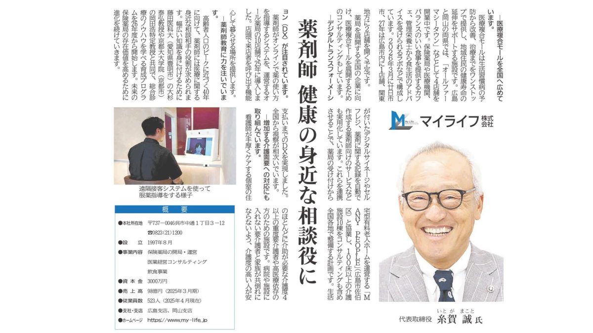 中国新聞元旦号『中国新聞LEADERS倶楽部』に弊社代表取締役 糸賀誠 のインタビュー記事が掲載されました。